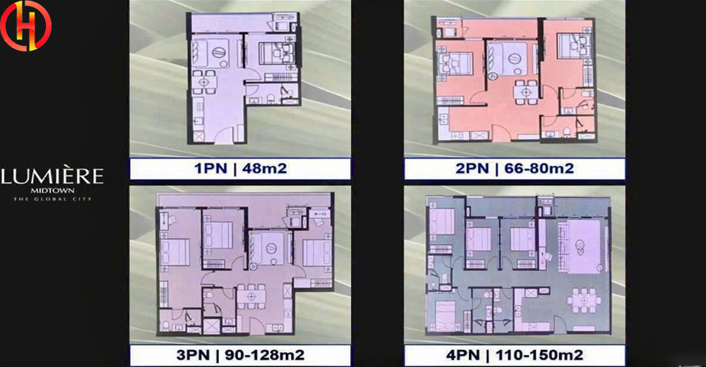 Từ 1PN (48m²) cho người trẻ độc lập, đến Penthouse (258m²) dành cho đại